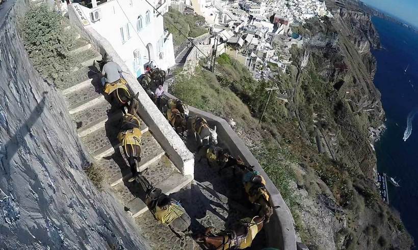 На самом деле здесь все выглядит не так романтично, как на фотографиях. На спусках встречается так много туристов, что пройтись пешком здесь достаточно сложно. А ослы, благодаря которым возможно проделать путь будто бы быстрее, чем пешком, гадят где попало и вонь стоит ужаснейшая. Да и я бы сказала, что это проблема всего Санторини. Из-за обилия ослов здесь невозможно гулять спокойно.