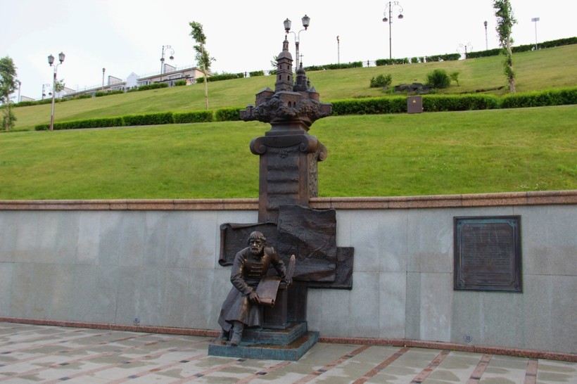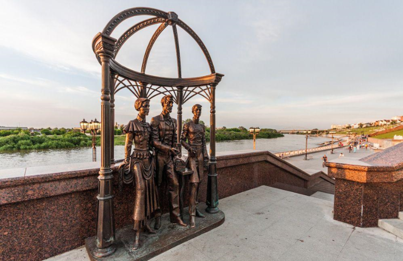 Памятники, в основном, располагаются на нижних уровнях набережной. Первый из них, который привлек мое внимание - это памятник студентам, которые учились здесь в 19 веке. Это скульптура из 3-х лиц, двух молодых людей и девушки.