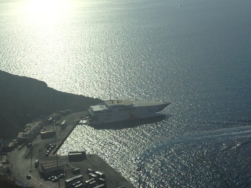 На Санторини мы приплыли в рамках однодневной экскурсии на катере - шатле, идущем с острова Крит.
