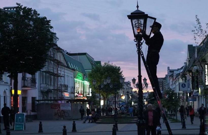 - Стать свидетелем ритуала зажжения фонарей. Собственно, ради этого я и приезжал оба раза в Брест. Первый раз дело было зимой, и когда я приехал, все закончилось, зато второй раз, в мае 2018 года, я, наконец, увидел то, что хотел. Дело в том, что в Бресте до сих пор зажигает фонари живой фонарщик. Этот поджарый пожилой мужчина, одетый в форму, в которой, наверное, ходили его коллеги 100-200 лет назад, вручную зажигает фонари на пешеходном участке улицы. Важный момент: время зажжения фонарей ежедневно указывается на больших часах, которые стоят как раз в районе пересечения улицы с проспектом Машерова.