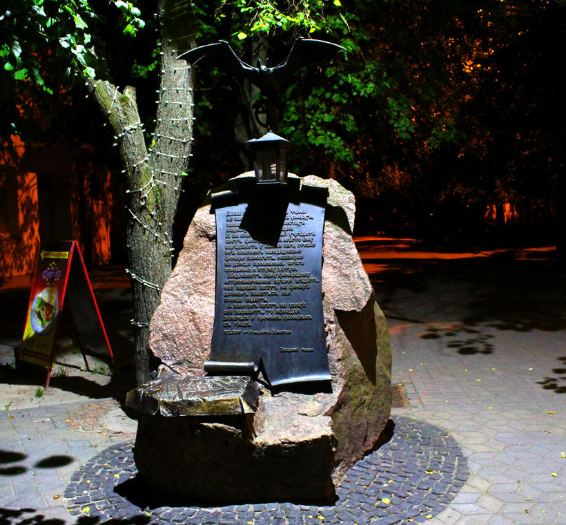 Впрочем, меня оба раза интересовала именно пешеходная часть. Дома по ее сторонам относительно невысокие. Оценить степень их старины я не берусь, но выглядят красиво. Из памятников отмечу композицию с летучей мышью и внушительный монумент «Тысячелетие Бреста», стоящий на пересечении с улицей Гоголя. Вместо асфальта на этом участке Советской ровно уложена брусчатка и установлены фонари в ретро-стиле.
