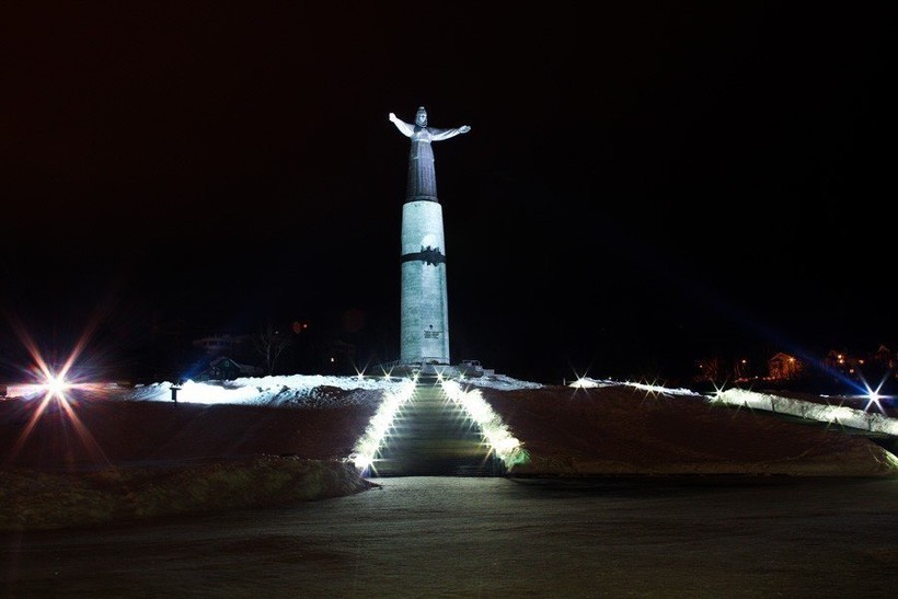В другой раз, когда я была возле памятника Матери-покровительнице, была ночь, и я увидела монумент с совершенно другой стороны. Фигура Матери очень искусно освещена, на нее направлены мощные прожекторы, ее видно, как днем. И именно ночью она производит наиболее сильное впечатление.