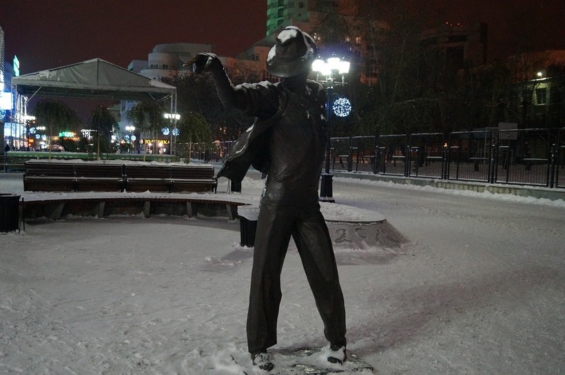 Памятник Майклу Джексону. Интересен он тем, что на сегодняшний день это единственный памятник данному певцу на территории нашей страны. Памятник полностью изготавливался на средства екатеринбургских поклонников Джексона.