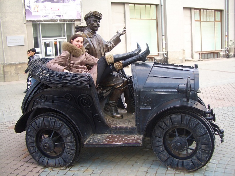 Движемся дальше по улице Вайнера. Через дорогу от Гринвича вы увидите памятник Артамонову – человеку, совершившему первый в мире велопробег из Нижнего Тагила в Москву.