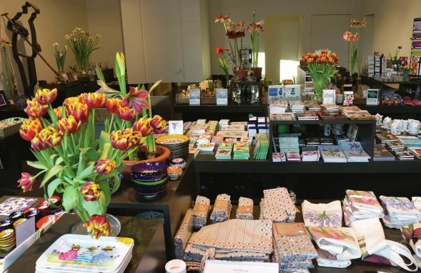 Тут же, при музее, функционирует магазин, он сувенирный, здесь можно приобрести самые разнообразные атрибуты с тюльпановой символикой, кружки, футболки, более дорогие дизайнерский сувениры - выбор очень велик. Также здесь можно приобрести луковицы тюльпанов, правда они не всегда бывают в продаже.