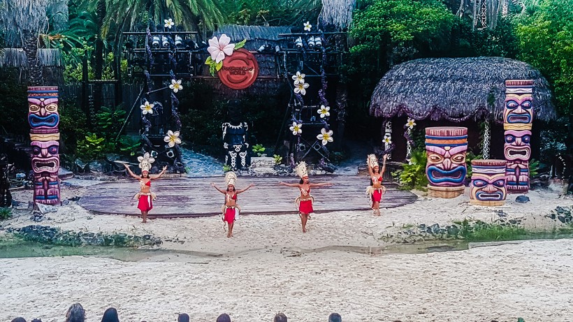 Зона Полинезии представляет собой украшенные экзотическими растениями и цветами.