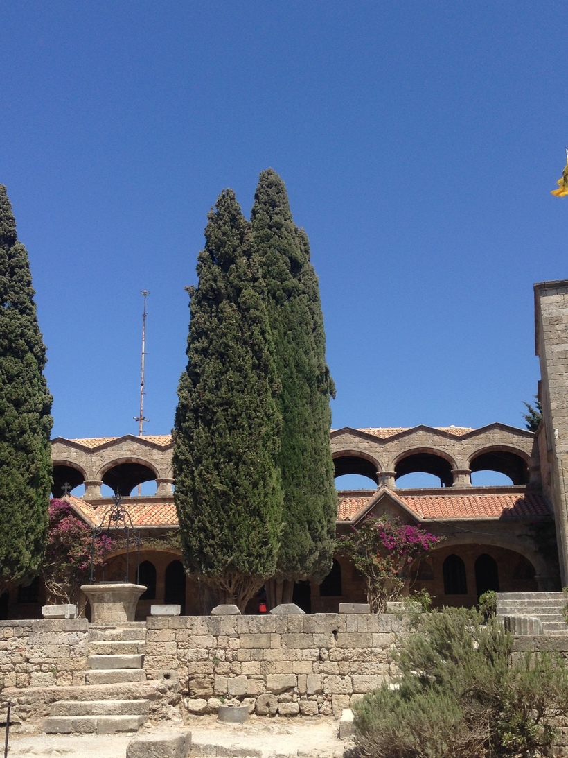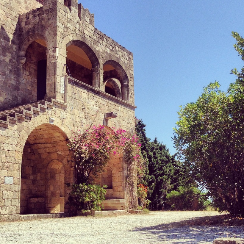 Монастырь оказался относительно небольшим красивым двухэтажным зданием, построенным умельцами былых лет. Перед ним был небольшой дворик, в центре которого стоял старинный колодец. Оказавшись здесь очень явно ощущаешь древность этого места и это неспроста - у него действительно долгая история. Несмотря на то, что здание монастыря было разрушено турками еще в 16 веке и восстановлено только в 20-м, все равно чувствуется, что это особенное место, долгое время бывшее очень значимым для людей. Когда-то на этом месте находились храмы Зевса и Афины, затем, спустя несколько столетий, в 13 веке, руками пришедшего сюда христианского монаха по имени Филерим была построена церковь. Он же привез сюда икону Богоматери, которая, как считается, была написана еще при ее жизни (сейчас в храме находится только копия). После смерти Филерима сюда пришли иоанниты, которые построили здание монастыря. То, что можно увидеть сегодня - восстановленный вариант, созданный итальянскими реставраторами, судя по результату их работы, знающими толк в своем деле.