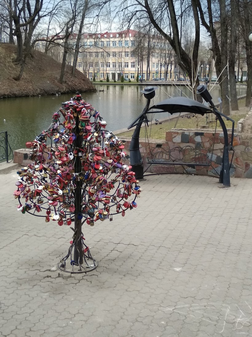 Ну, а, чтобы обидно никому не было замки перекочевали на специальные деревья для них около этого моста. И здесь даже обустроили специальную зону для молодоженов с тематическими лавочками фонарями).