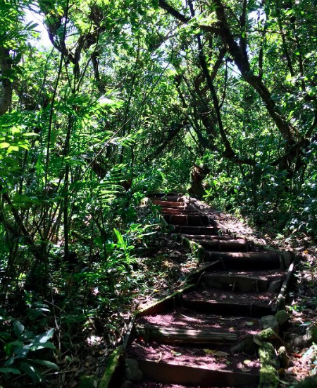 На вершине раскинулся целый национальный парк! Сплошные зеленые джунгли окутывают, как только подбираешься ко входу. Прогуливаться по ним сплошной удовольствие - воздух наполнен влагой, кислородом и ароматами природы. По парку легко и приятно перемещаться - все тропинки вымощены деревянными дорожками, мостками и ступеньками.