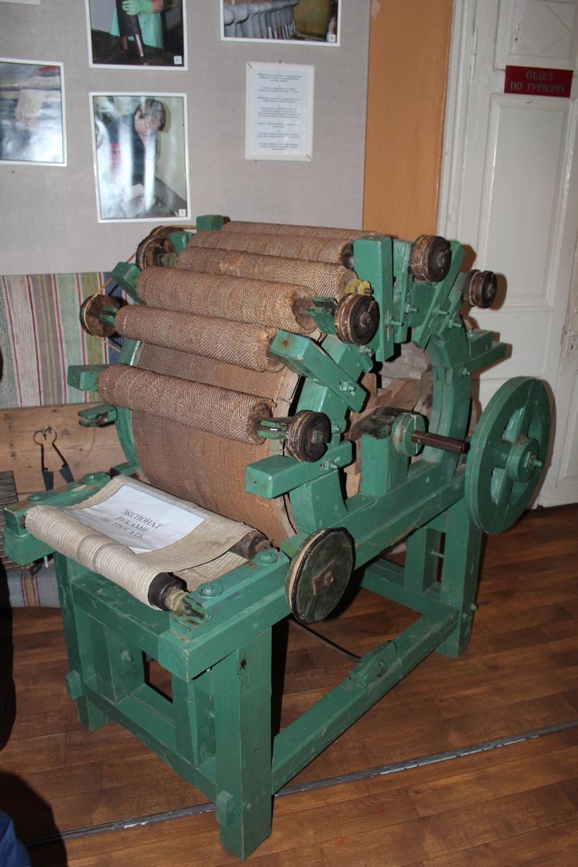 Стоят машины, на которых готовили шерсть для валяния.