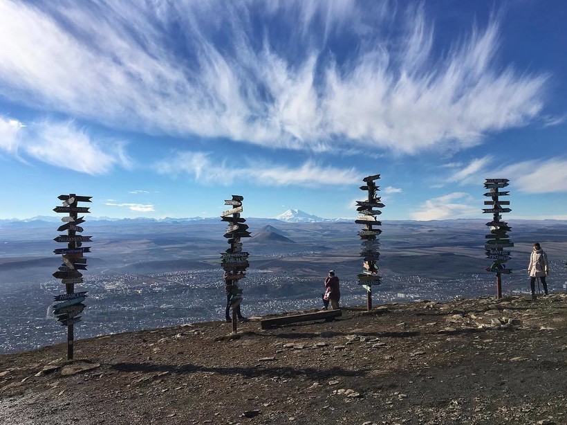 Указатели на вершине горы Машук (Пятигорск, Россия)