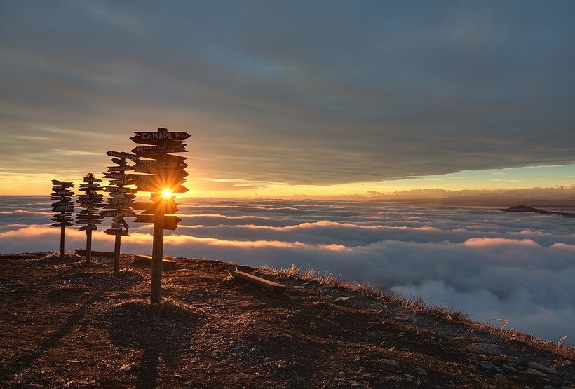В плохую погоду к указателям лучше не подниматься, потому как поискать табличку с названием своего города или сделать красивое фото с ними все равно едва ли получится – указатели стоят прямо на склоне горы, и в дождливую погоду земля под ними превращается в грязь, а те редкие туристы, которые все-таки рискуют подойти к указателям поближе, увязают в этой грязи. Потому не советую.