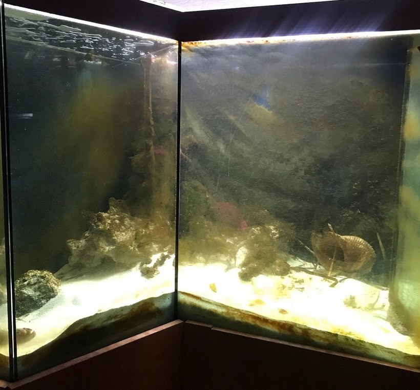 Разумеется, ни о каких крупных обитателях речи не идет. Выглядит все очень по-любительски, и остается только надеяться, что обитателям аквариума не слишком тесно в их стеклянных вольерах.