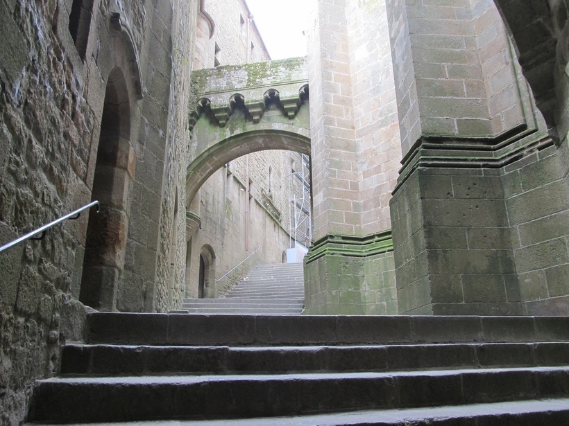Когда нам надоело тереться с толпой китайцев, мы решили подняться наверх на крепостные стены. На улице Гранд Рю есть несколько лестниц ведущих вверх к башням. Вдохнув свежий атлантический воздух, сделав несколько отличных фотографий на фоне Залива Мон-Сен-Мишель, мы отправились дальше осматривать окрестности.