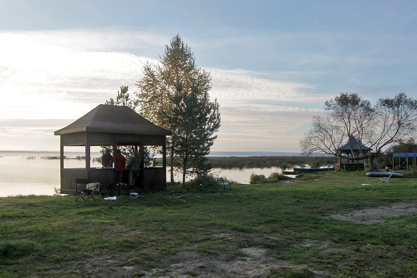 На базе можно поставить палатку, за отдельную плату можно пользоваться беседками, мангалами и прочей инфраструктурой, брать напрокат лодки. Добытую рыбу бесплатно замораживают в холодильнике, что очень удобно. Хороший песчаный пляж. В общем, база неплохая.