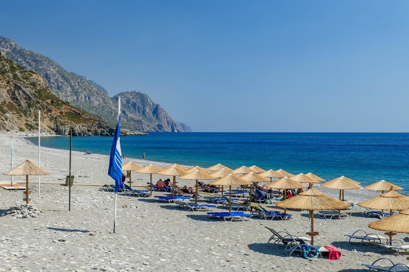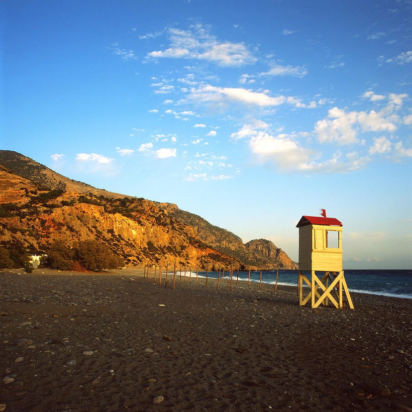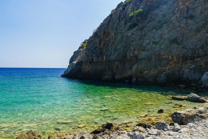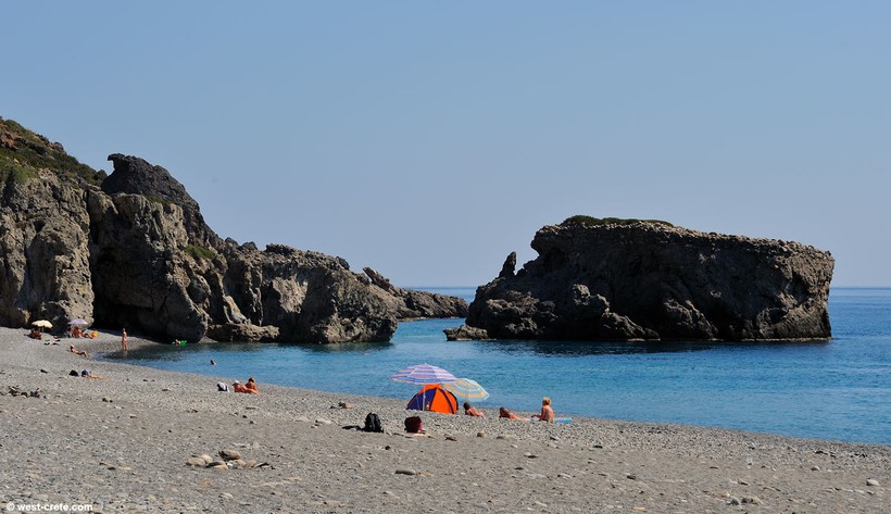 Пляж песчаный, местами камни – он смешанный, как большинство пляжей на Крите. Заход довольно удобный, и я думаю, что детям там тоже будет здорово. Нам хватило этих 15 минут, чтобы быстро окунуться, переодеться и сесть в свой автобус, который нас повёз домой... в смысле, в отель.
