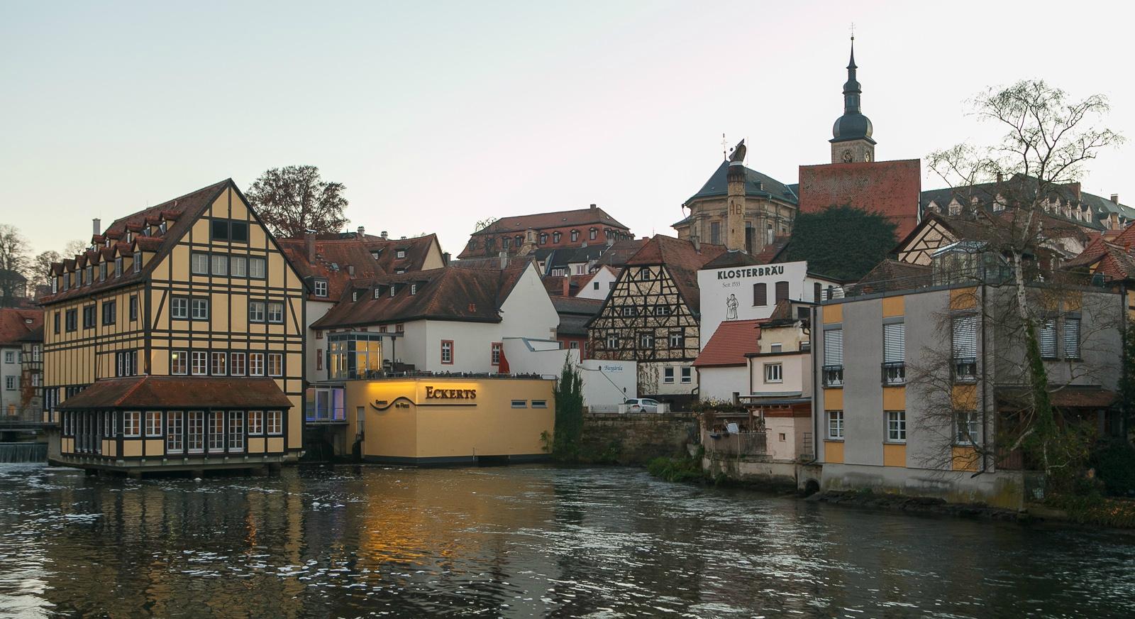 Зачем ехать. Даже если обойти весь Бамберг вдоль и поперек, даже если исколесить все окрестные городки, все равно не удастся найти такого живописного местечка. Я, когда впервые увидел район Маленькая Венеция, то обомлел. Можно сколько угодно называть Немецкой Венецией кварталы в Страсбурге, Мюнхене или Кольмаре. На самом деле, я твердо уверен, настоящая Венеция в немецком стиле существует в Бамберге.