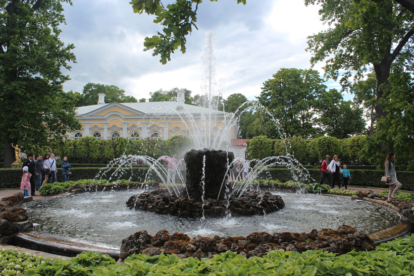 Впервые я посетила Петергоф в мае, тогда, когда ещё не все фонтаны работали, но минус фонтаны – минус много народу. Посмотреть все удалось неспешно, и подробно! А потом, через несколько лет я оказалась здесь в июне, в самый расцвет природы, в сезон работы фонтанов и просто в очень удачное время. И посмотрев на всю популярную пышность самых известных памятников архитектуры и садово-паркового искусства, отправилась в Нижний парк. Именно от сюда была сделана фотография моего друга. Мечта сбылась!!!