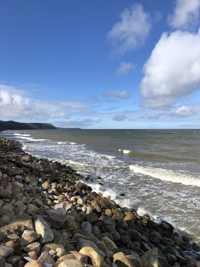 Не знаю, восстановили ли променад сейчас, но когда была я, там был отремонтирован (ну или уцелел) очень маленький участок набережной. По остальному приходилось гулять на свой страх и риск (лезть через разломанную лестницу), идти по камням вдоль берега, когда внизу тебя бушуют волны, зато наградой был пустынный и очень фотогеничный кусочек пляжа.