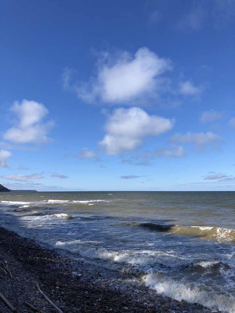 Мне набережная понравилась даже после того, как ее всю разбомбило штормом. Виной всему вот этот вот красивейший вид, который я увидела сразу, как вышла к набережной. :)