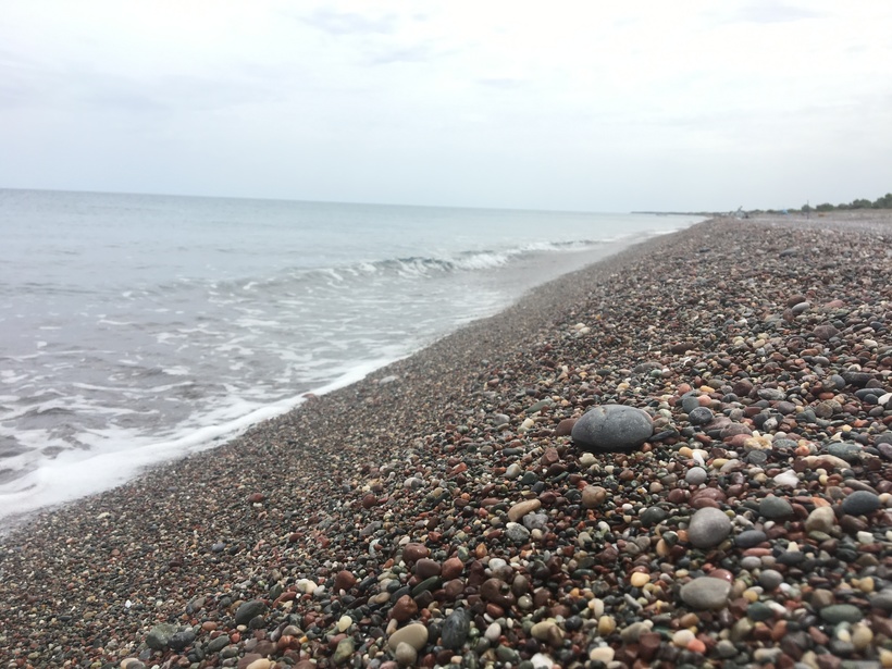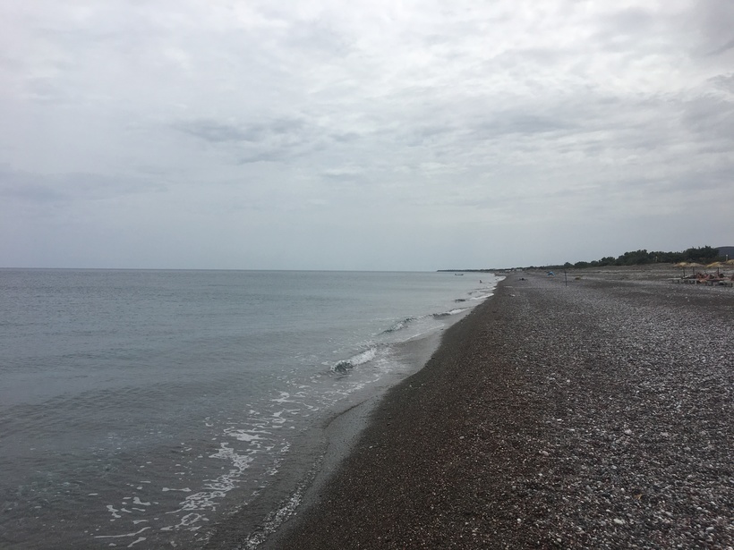 Пляж Геннади оооооочень длинный, невероятно пустынный (вообще почти никого не было) и каменистый. Весь он покрыт галькой среднего размера. На берегу очень чисто, в воде – еще прекраснее! Она просто кристальная!