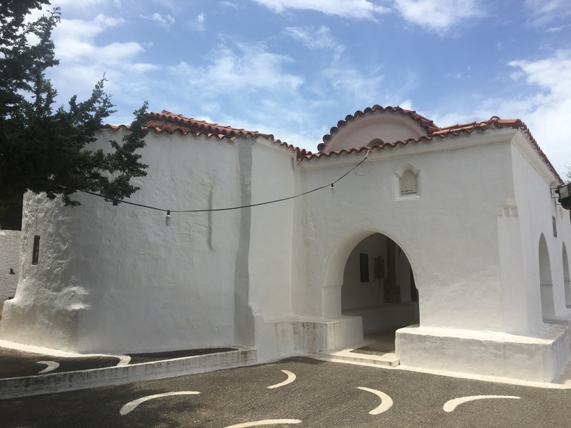 И предлагаю вам один неочевидный, но отличный лайфхак для туристов: в подобных церковных комплексах на Родосе, практически всегда во дворе есть туалеты – бесплатные и вполне неплохие.