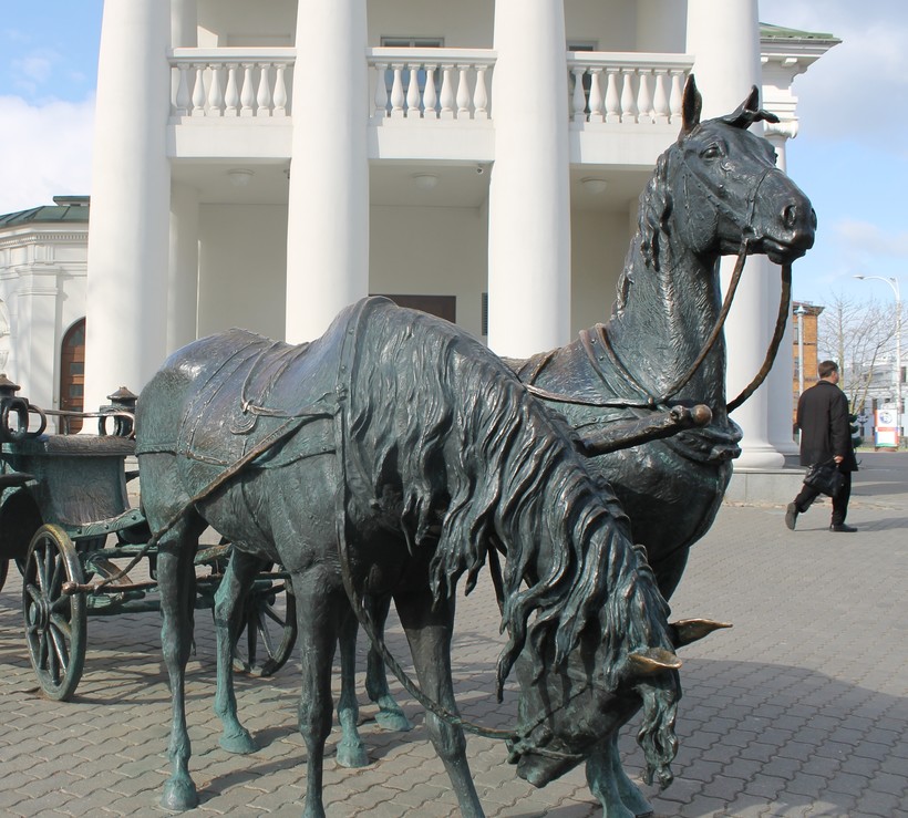 Один из самых фотографируемых памятников - это скульптура Экипаж. Пусть это не живые лошадки, но все равно, встретить на улице такой памятник - очень поднимает настроение, особенно если залезть в повозку.
