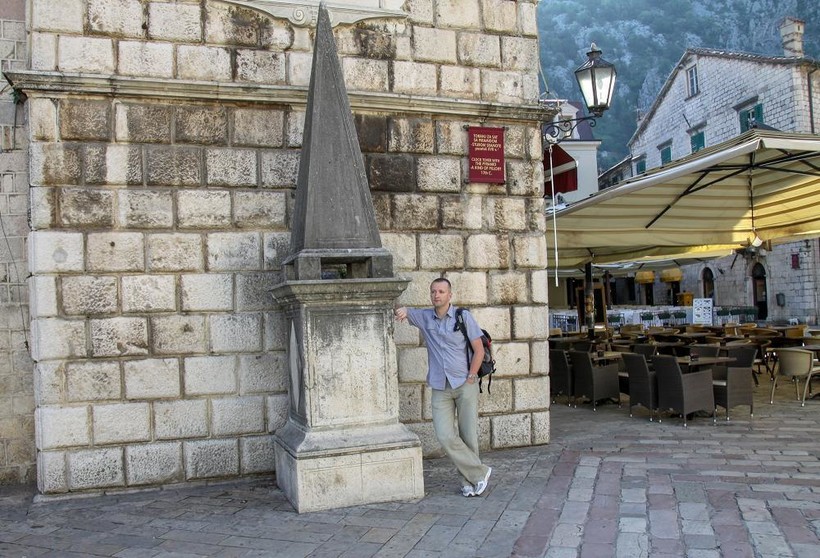 Возле западной стены мы увидели необычный объект, который сперва сочли уменьшенной копией башни. Я несколько раз видел в Европе, что около соборов ставят модели, чтобы всем было видно, как здание выглядело раньше. Мы подумали, что раньше башня была остроконечной, как увиденная нами диковинка. Но догадка оказалась неверной, мы попали пальцем в небо. Перед нами предстал позорный столб Котора. В прежние времена у него закрепляли провинившихся горожан, чтобы все их видели и осуждали. Мы разошлись во мнениях на данный счет. Я считаю, что всякие хулиганы заслуживают получить известность за счет позорного столба, девушки сердобольно возражали, что наказание слишком унизительное. Порка, по их мнению, более годится для воспитательных целей. В любом случае, которцы подошли к вопросу грамотно: раз в Москве, Лондоне и Париже людей казнили на центральных площадях, чем черногорцы хуже? Они тоже поставили позорный столб на центральной площади, возле высокой, хорошо заметной башни.