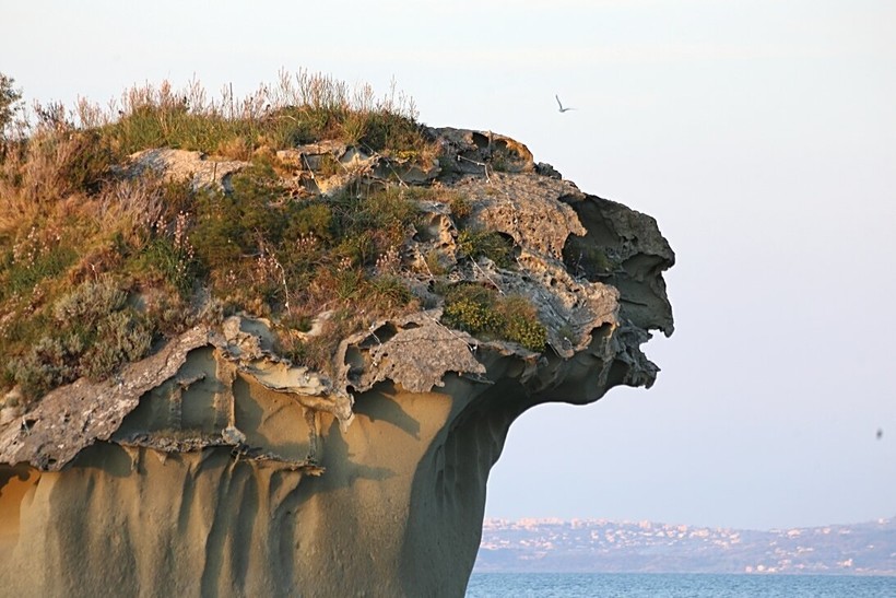 Скала правда по форме похожа на самый настоящий гриб, знаете, как в сказках - такой Боровичок на толстой ножке. Только в случае с этим «грибом» - форма ножки широкая и неправильная. Скала (или риф) приобрела такую форму из-за обмеления этой части берега, т.е. ножка «гриба» — это его бывшая подводная часть.