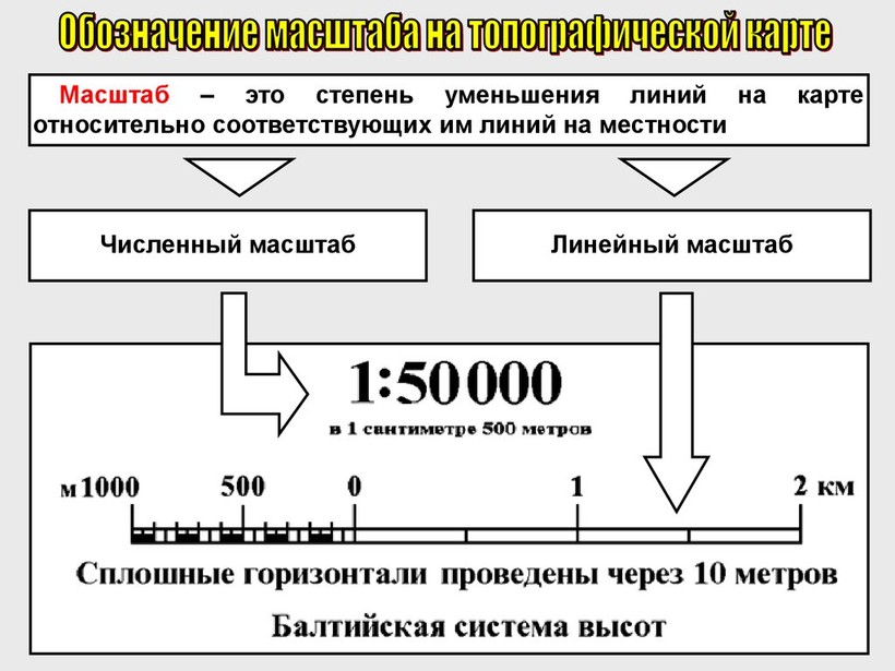 Масштаб на картах и планах может быть записан по-разному. Всего есть три вида: