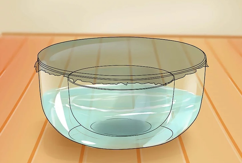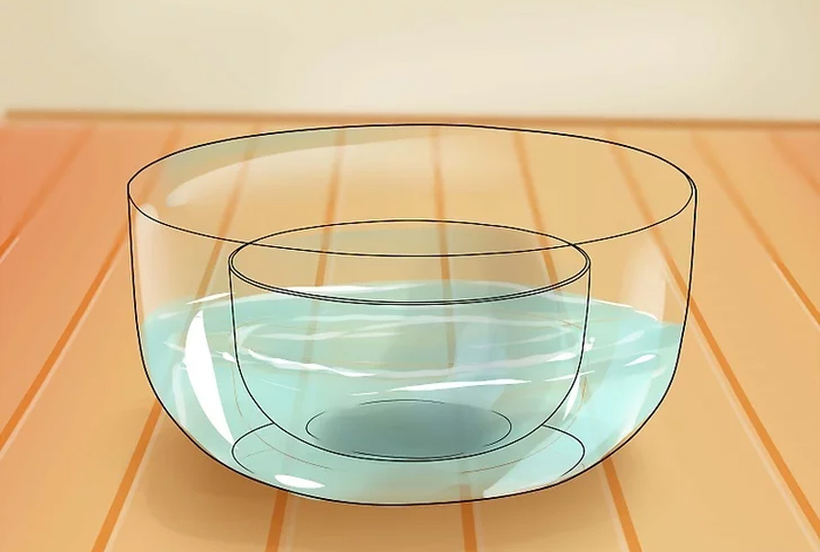 - Большая миска наполняется соленой водой, маленькая остается пустой и тоже помещается в мисочку побольше – прямо в воду.