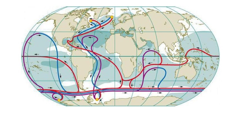 Относительно температуры, течение может быть холодным либо теплым. С этим связана определенная закономерность: теплые направлены к полюсам от экватора, а холодные движутся в обратном направлении.