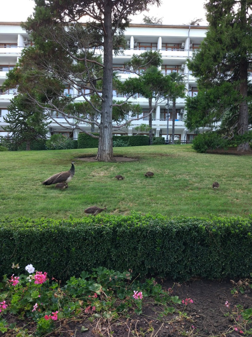 По территории парка теперь ещё свободно гуляет семейство павлинов. Я такое раньше видела только в зоопарке Рима. Птенцы у павлинов очень милые и забавные))).