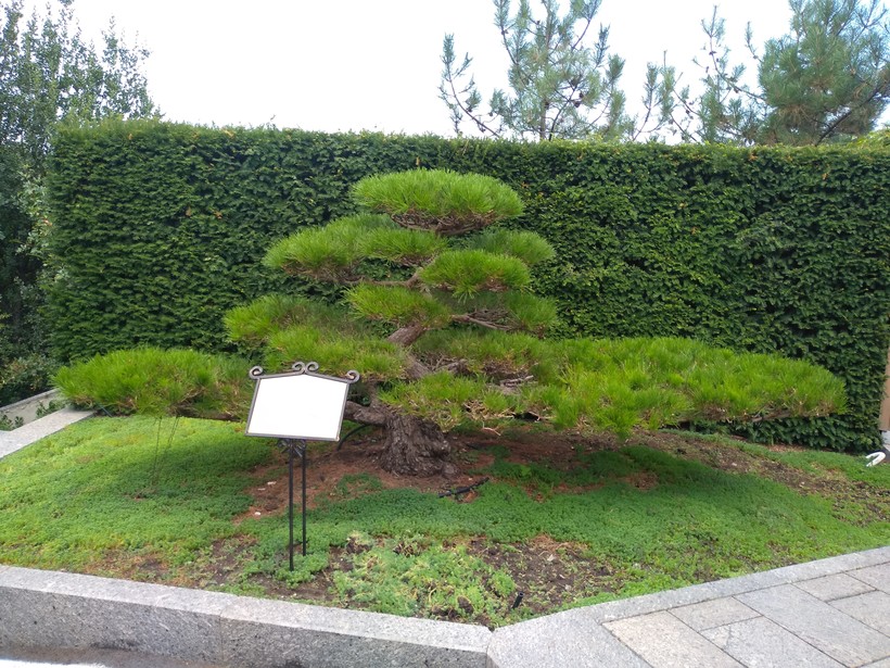 Украшение у входа в японский сад. Сосна-бонсаи.