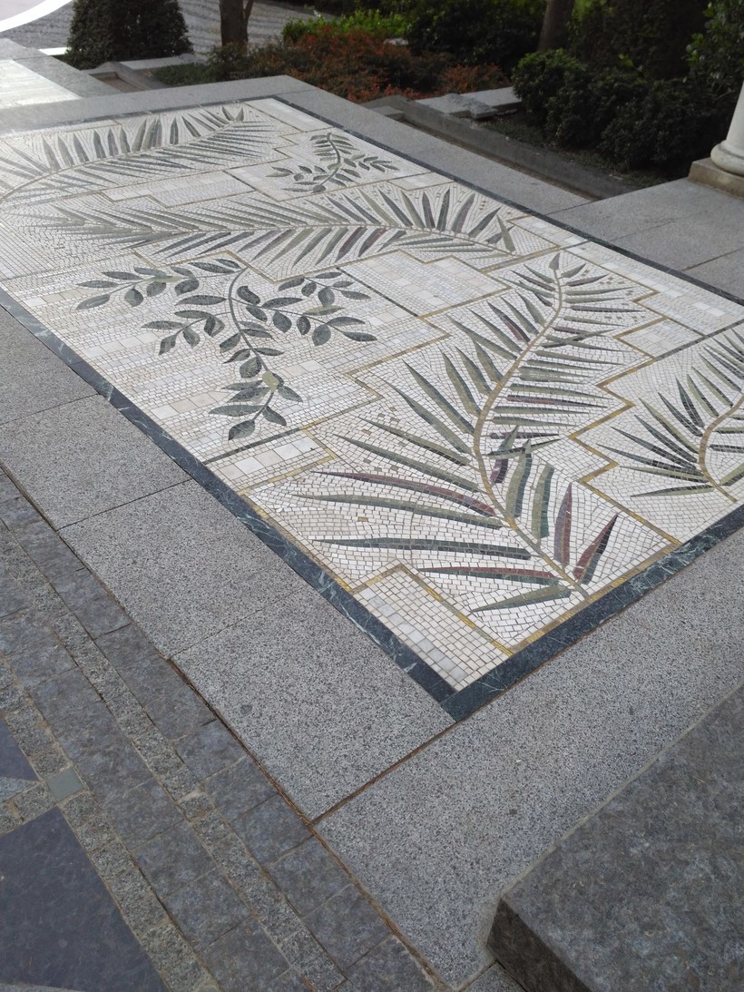 Пролеты лестницы украшены мозаикой, на подступенке некоторых ступеней написаны отрывки из стихотворений А.С.Пушкина. Их хорошо видно если по этой лестнице идти вверх.