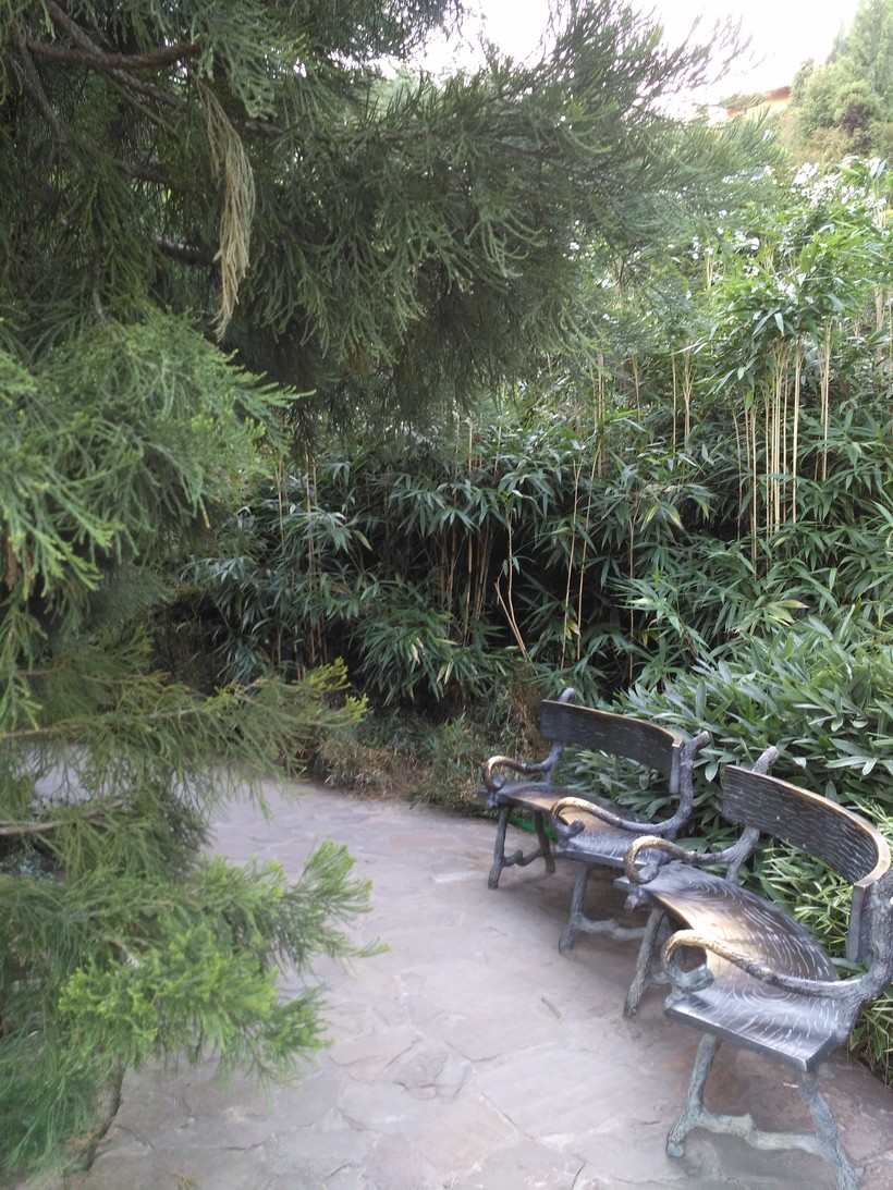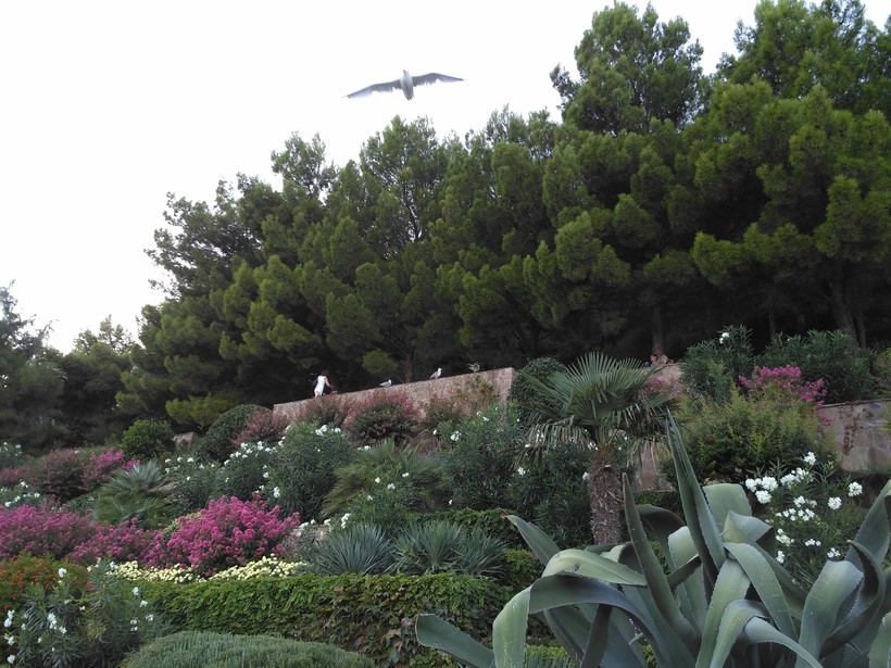 Как я уже написала, парк выходит к морю, можно пройти по берегу, а можно присесть отдохнуть на ярус выше, здесь обустроена стена в духе рыцарских замков и стоят скамейки для отдыха – это прекрасное место для уединения или для чтения книги.