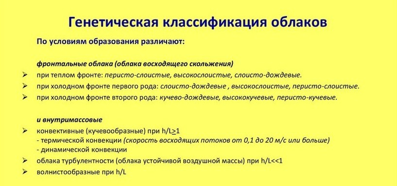 Классификаций облаков очень много. Основные: морфологическая и генетическая.