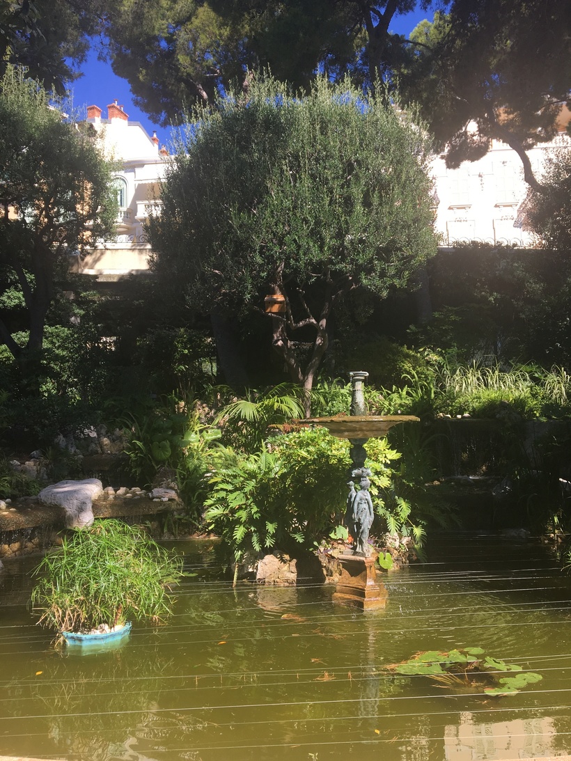 Для меня парк Святого Мартина делится на две части, по обе стороны от Океанографического музея. Захожу я в него в одну часть, а выхожу из другой, в зависимости от планов и настроения. В этот раз я поднялась сначала к Княжескому дворцу, утром подниматься в гору гораздо легче, чем по полуденной жаре. А вот потом, гуляя по парку, я шла всегда немного под горку и это было очень легко и приятно. Часть парка между дворцом и музеем, более парадная. Здесь прекрасные фонтанчики, беседки и статуи.