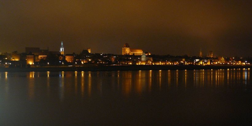 - Рассматривать с противоположного берега Вислы или с моста. Хотя я и не переходил пешком на другой берег, но навсегда запомню панораму вечернего Торуня, которую я видел на пути к гостинице из окна автомобиля. Тут мне оставалось только пожалеть, что я не купил дорогой видеорегистратор с хорошей ночной съемкой.