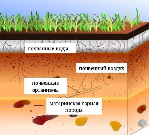 Почва содержит четыре фазы: минеральные вещества, химические элементы, характеризующие плодородие (твердая); почвенный раствор (жидкая); углекислый газ, кислород, азот (газообразная); бактерии, водоросли, беспозвоночные (живые организмы).