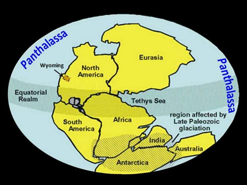 Кроме того, он выдвинул предположение о существовании и праокеана — Панталасса. Его огромный залив под названием Тетис вдавался в Пангею между будущими материками — Евразией и Австралией.