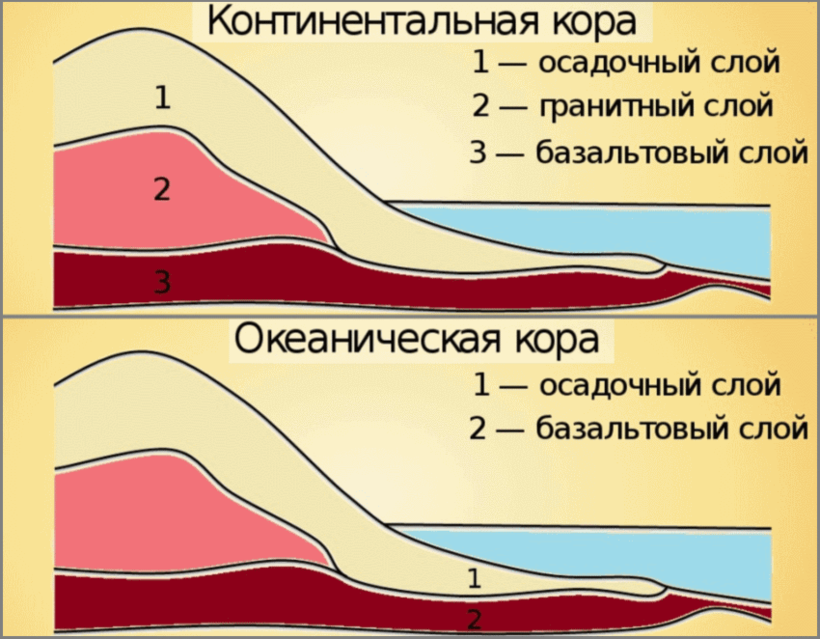 Такую кору еще называют континентальной, и состоит она из 3 слоев.
