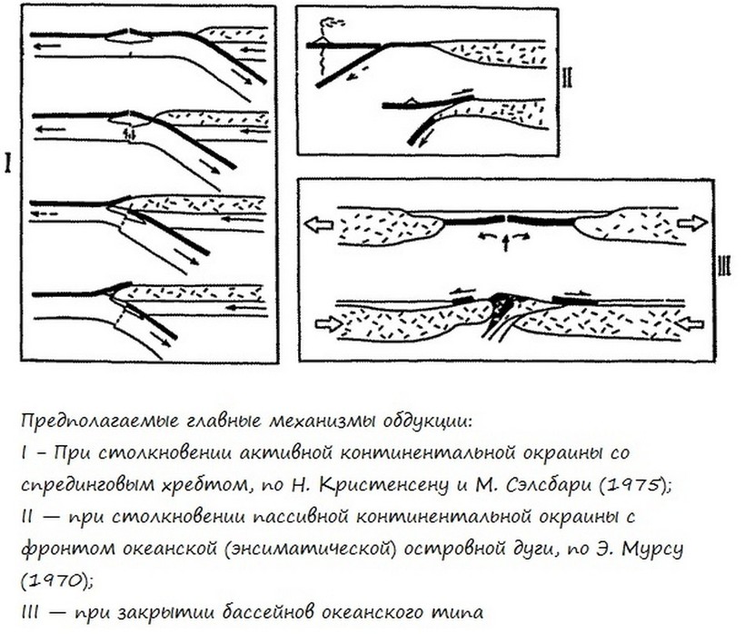 Процесс, описанный в последнем пункте, называется обдукцией и означает наслоение тектонических пластин одной на другую.