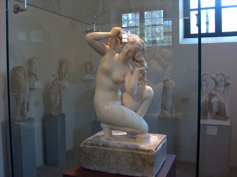 - Античные скульптуры. Из тех, что представлены в родосском музее, многие сохранились полностью или почти полностью. Самой известной является статуя сидящей Афродиты, которая, очевидно, моет волосы — эта скульптура действительно отличается от большинства дошедших до нас древнегреческих статуй, которые чаще всего изображают стоящих людей.