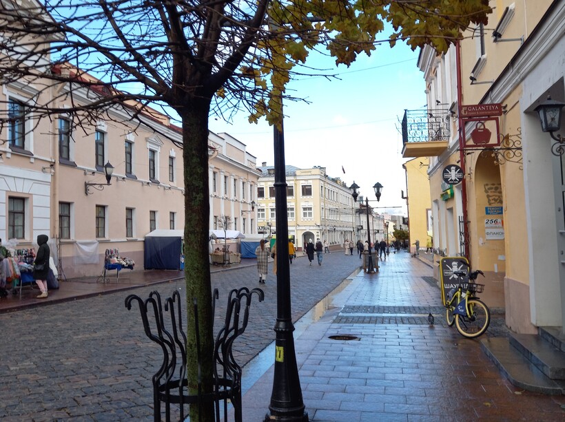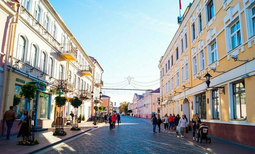 Посещение мной древнейшего белорусского города Гродно не могло обойтись без прогулки по улице Советской — главной пешеходной улице города, расположенной в самом его центре. Протяженность пешеходной зоны небольшая, всего около полукилометра (тянется от Советской площади до улицы Ожешко).