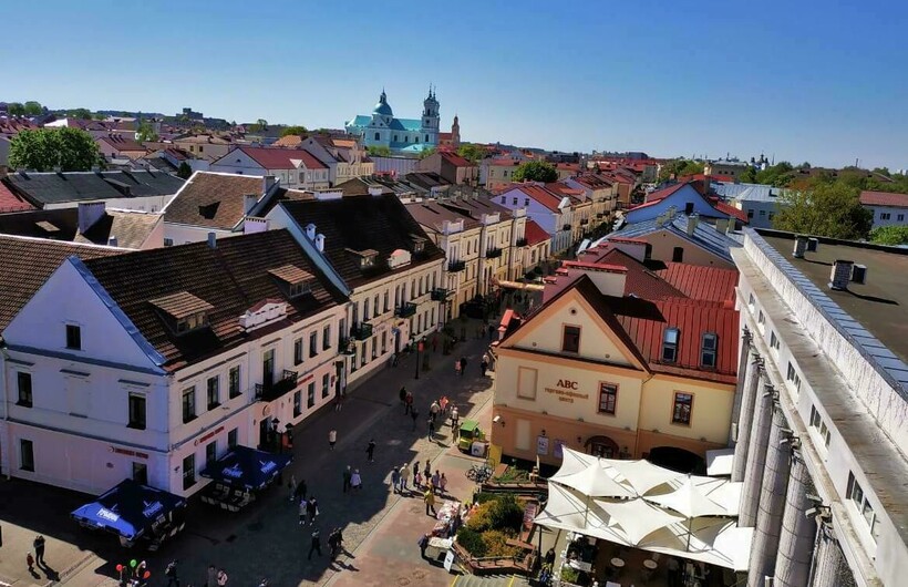 Прогуливаясь по Советской, обязательно поднимитесь на обзорную площадку, расположенную на крыше торгового дома «Неман». С крыши открывается красивейшая панорама исторического центра.