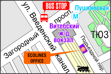 Автобус отправляется также с Витебского вокзала, перекрёсток Загородного пр. и ул. Введенский канал около парка.