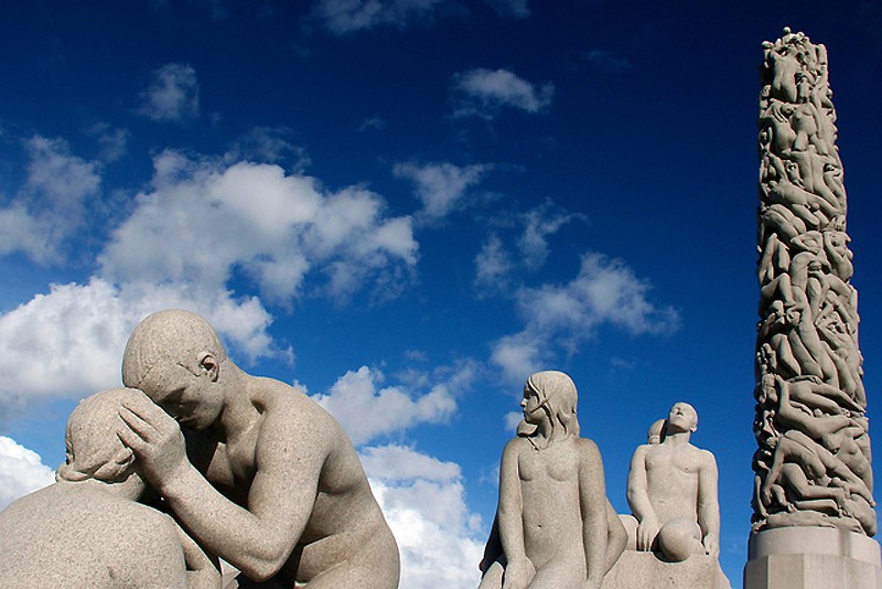 Парк скульптур, расположенный в районе Тьювхолмен, основанный архитектором и скульптором Густавом Вигеландом - очень противоречивое место, которое вызвало у меня смешанные и спутанные эмоции. Конечно, задумка грандиозная, место просто феноменальное, и как бы я не относилась к скульптуре в целом и общем, забыть то, что я здесь увидела, не смогу. Но дело даже не в грандиозности и масштабности. А в том, что я, закрытый человек, не готова была увидеть столько человеческих эмоций, пусть и выраженных в камне. Вот знаете, мне в некоторые моменты даже казалось, что автор этих работ вынул из меня душу, показал ее всем вокруг и вернул обратно. И даже какое-то время у меня было ощущение, что я никогда не стану прежней. Правда, оно прошло в скором времени, но эти эмоции, испытанные мною в парке Вигеланда, я запомню надолго.