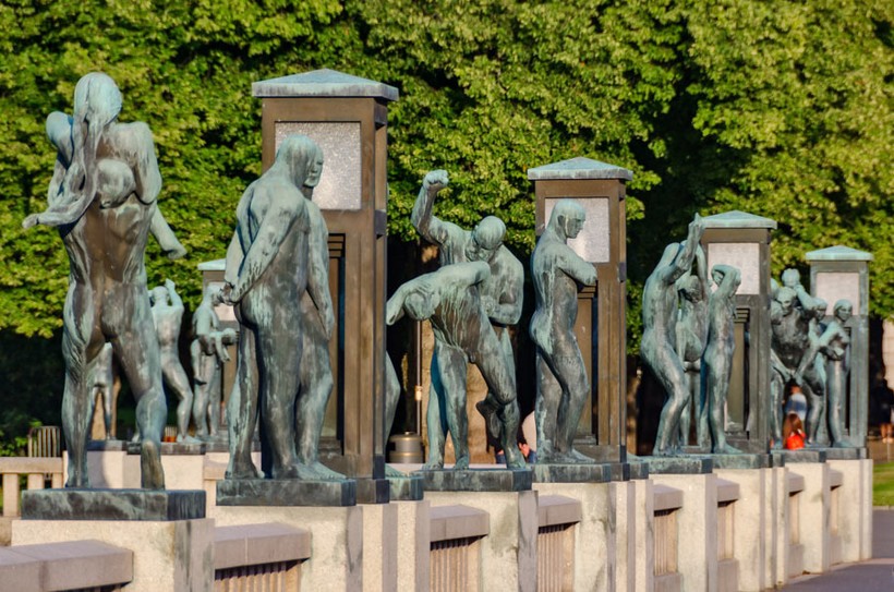 Парк заполонен скульптурами. Я даже точно не могу вам сказать сколько их здесь, но у меня сложилось такое ощущение, что не меньше тысячи. Эти бронзовые люди стоят везде, куда ни глянь. И при этом они все, мягко говоря, обнажены. Я далеко не ханжа, но к такому количеству голых тел, пусть и в камне, причем выполненных с детальной анатомической точностью, я не была готова увидеть. И именно из-за обнаженных тел я не сразу смогла распознать суть этих скульптур. А суть в эмоциях, состояниях, изменениях людей, которые тут изображены и показаны. Если абстрагироваться и посмотреть глубже, то можно, все-таки, рассмотреть то, что хотел до зрителя донести автор. Среди невероятного количества скульптур есть те, которые и шокируют, и поражают одновременно. Описать их все, естественно, невозможно, расскажу о нескольких, которые действительно запали мне в мозг, а некоторые - и в душу.