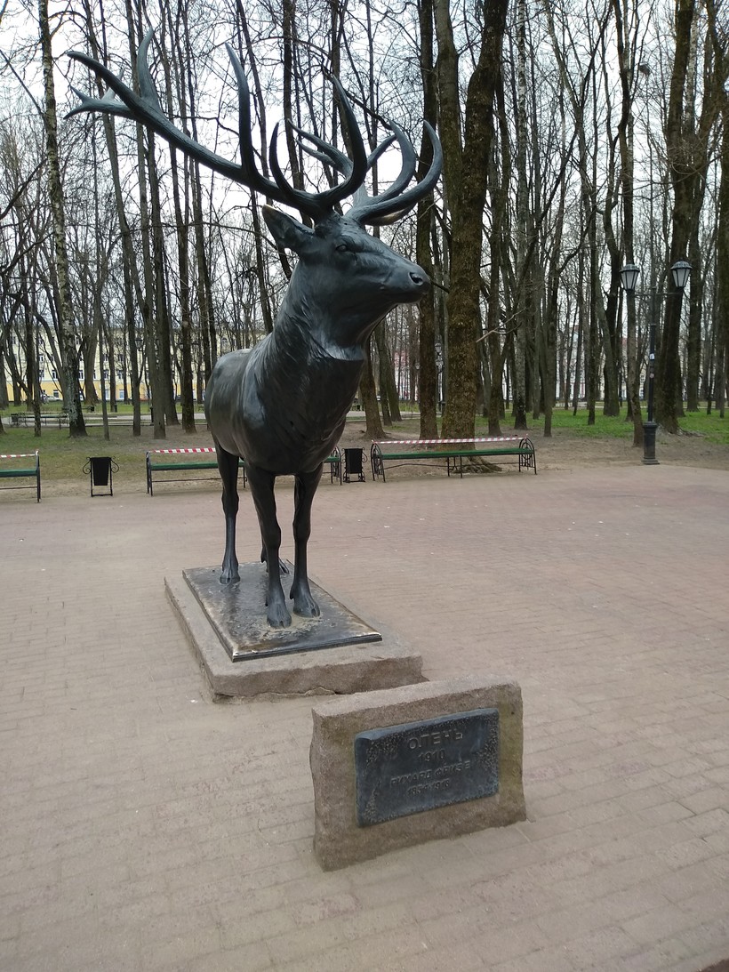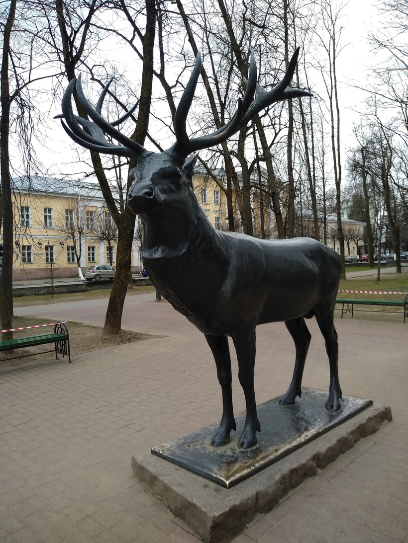 Но оказывается у этой скульптуры богатое прошлое. Во-первых, скульптура довольно старинная. Собственно, создана была в честь самого настоящего оленя, подстреленного на охоте прусским королем, во-вторых много «путешествовала», изначально украшала собой резиденцию Прусского короля. Потом попала в Германию, а оттуда в 1946 году ее доставили в Смоленск и установили в этом саду.